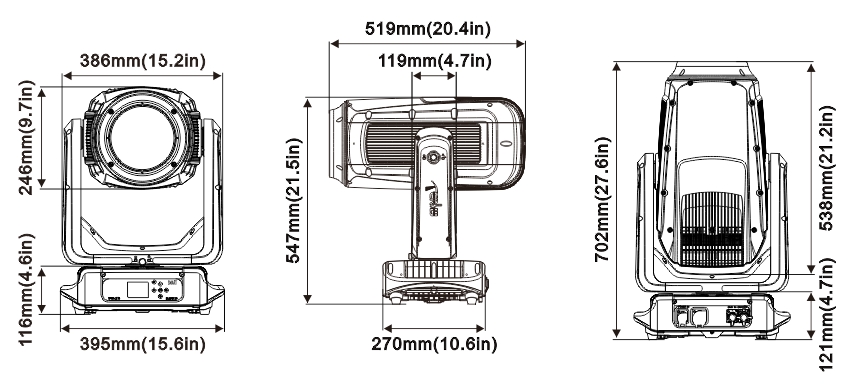 可從控臺完成更改DMX地址碼,機(jī)器重設(shè)等功能